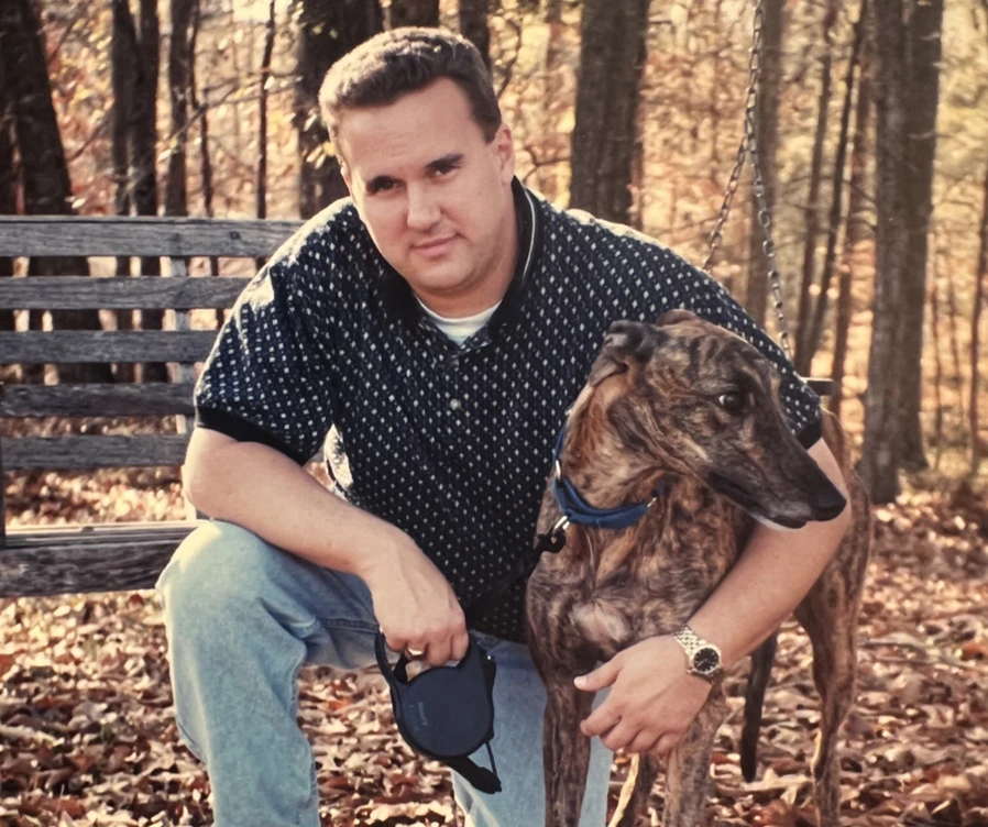 Our story starts with Darby, a former racing greyhound up for adoption at the 1998 Anderson County fair. Dan (today the owner of Pupstate Pet Resort but at the time was a Product Manager with a power tool company) connected with Darby right away, and in just a few days the adoption process was complete, and Darby was his. Darby was his buddy, his friend, and his 40mph couch potato. When Dan needed to start traveling for work, he needed a place he could trust to board his buddy while he was away.